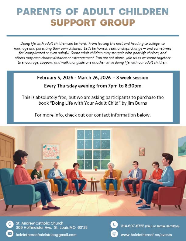 Add to Your Calendar: 02/05/2026 19:00 02/05/2026 20:30 America/Chicago Parents of Adult Children - 8 Week Support Group Meetings